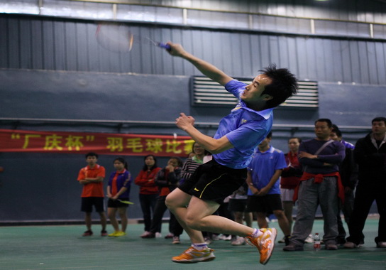 12月7日一大早,,,,,角逐现场就充满火热的角逐气氛。。。9个羽毛球场同时开赛,,,,,全场马上热火朝天,,,,,欢呼声此起彼伏。。。赛场上,,,,,着运动装的参赛者们活力四射,,,,,激情迸发。。。参赛选手充分验展顽强拼搏的精神,,,,,其中几位羽毛球能手的精彩体现,,,,,更为角逐增色不少。。。尤其在各个项目的决赛中,,,,,强强对弈,,,,,激起场下一片欢悦,,,,,整个赛场上下充满了拼搏、协谐和欢喜的气氛。。。